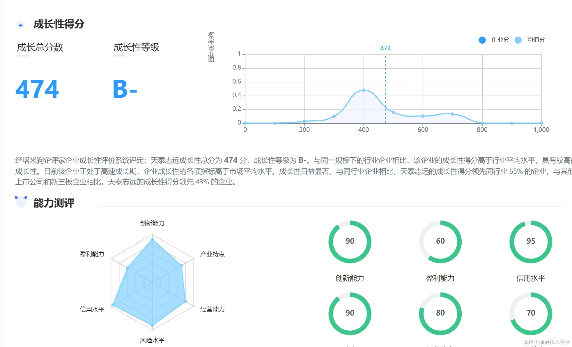 经塔米狗企评家企业成长性评价系统评定:天泰志远成长性得分 474,已超越塔米狗数据库该行业 65% 的企业,已超越全行业 46% 的企业。企业成长性等级为 B-。与同一规模下的行业企业相比,该企业的成长性得分高于行业平均水平,具有较高的成长性。目前该企业正处于高速成长期,企业成长性的各项指标高于市场平均水平,成长性日益显著。与其他上市公司和新三板企业相比,天泰志远的成长性得分领先 43% 的企业。