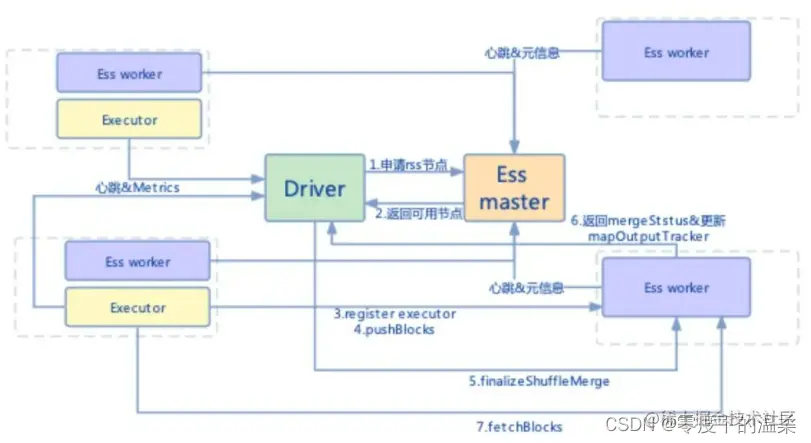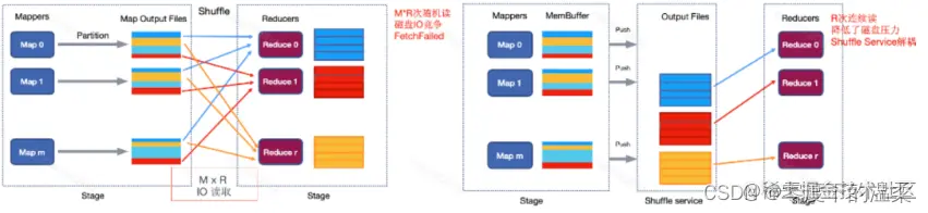 - remote shuffle service:push based shuffle 方案可以大量降低磁盘随机IO读请求,如下图: