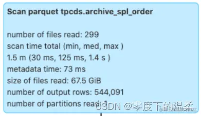 通过对 state 进行 order 后 scan 阶段数据量直接从亿级别降至数十万级别。在生产中我们通过对 SQL 进行血缘分析找到那些热点表及高频 filter 列,将这些热列作为 table properties 存入 hms 中,在 Spark 执行时根据从 hms 中获取的列信息,通过相应的优化规则,物理计划自动增加 sort 算子,完成对数据组织。这个方案是基于列存优化数据组织来进行 data skipping,目前我们也在往索引方向上进一步探索。