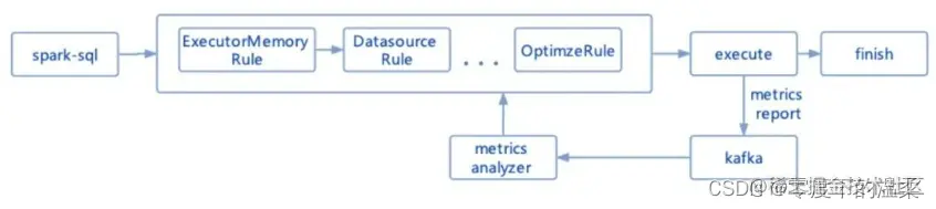首先对任务执行的 SQL 进行了指纹计算,通过指纹来标识该任务每天执行情况,将每次执行中采集到的 metrics 收集后用策略进行分析给出相应的参数优化建议,在下次执行的时候根据指纹来获取推荐的执行参数,对于使用默认参数的任务则进行覆盖,对于那些用户指定的参数则优先使用用户参数。