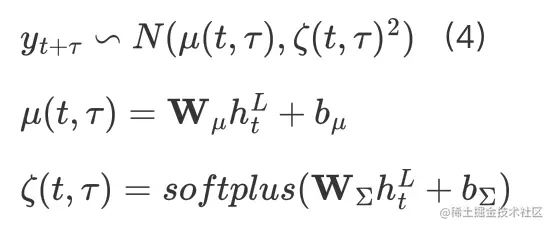 其中htL是网络的最后一层,softplus(.) 是 softplus 激活函数,以确保标准差仅取正值。