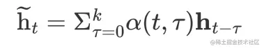 其中ht−τ是网络较低层提取的中间特征,α(t,τ)∈[0,1]是t−τ在时刻 t 生成的 attention 权重;h˜t是 attention 层的上下文矢量输出。