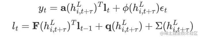 其中lt是隐状态,a(.),F(.),q(.)是hi,t+τL,ϕ(.),Σ(.)的线性变换,是具有 softmax 激活的线性变换,并且 t ∼ N(0, 1),ϵt∽N(0,1),Σt∽N(0,I)是标准正态随机变量。
