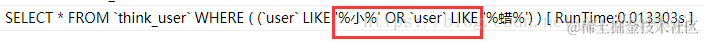 $map['user'] = array('like',array('%小%','%蜡%'),'AND');