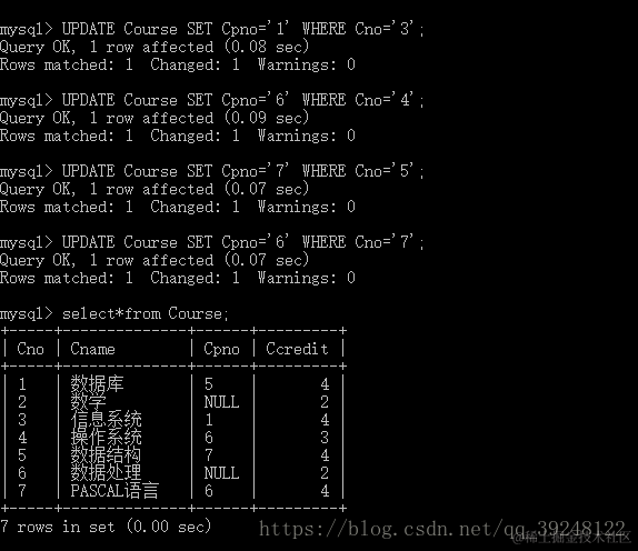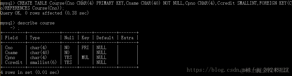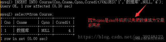 FOREIGN KEY(Cpno)REFERENCES Course(Cno)/*表级完整性约束条件,Cpno是外码,被参照表是Course,被参照列是Cno*/