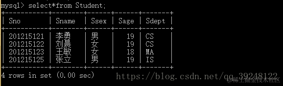 | 学号(Sno) | 姓名(Sname) | 性别(Ssex) | 年龄(Sage) | 所在系(Sdept) |