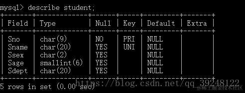 Sno CHAR(9) PRIMARY KEY,/*列级完整性约束条件,Sno是主码*/