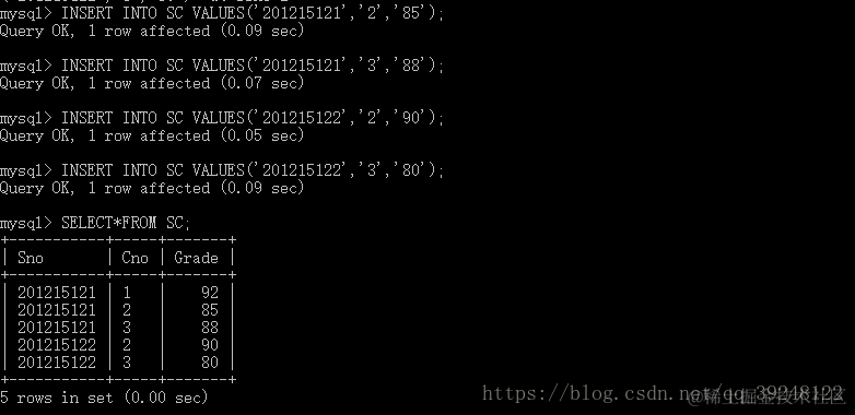 | 学号(Sno) | 课程号(Cno) | 成绩(Grade) |