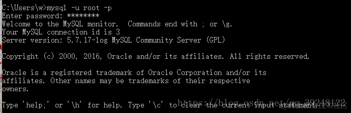 登陆MySQL:mysql -u root -p 然后根据提示输入密码\