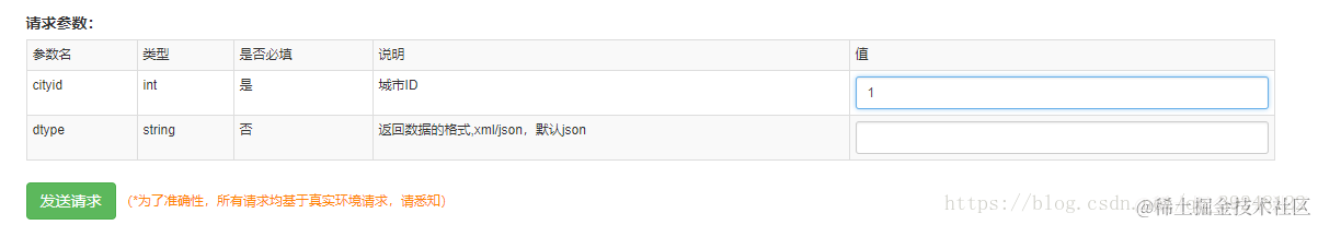 然后填写参数,其中有一项cityid必填,但是我们并不知道cityid
