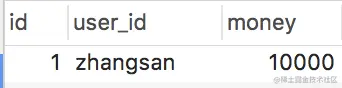先自己手动给 account 表和 storage 表加几条记录,比如我这里设置 zhangsan 有 10000 块钱: