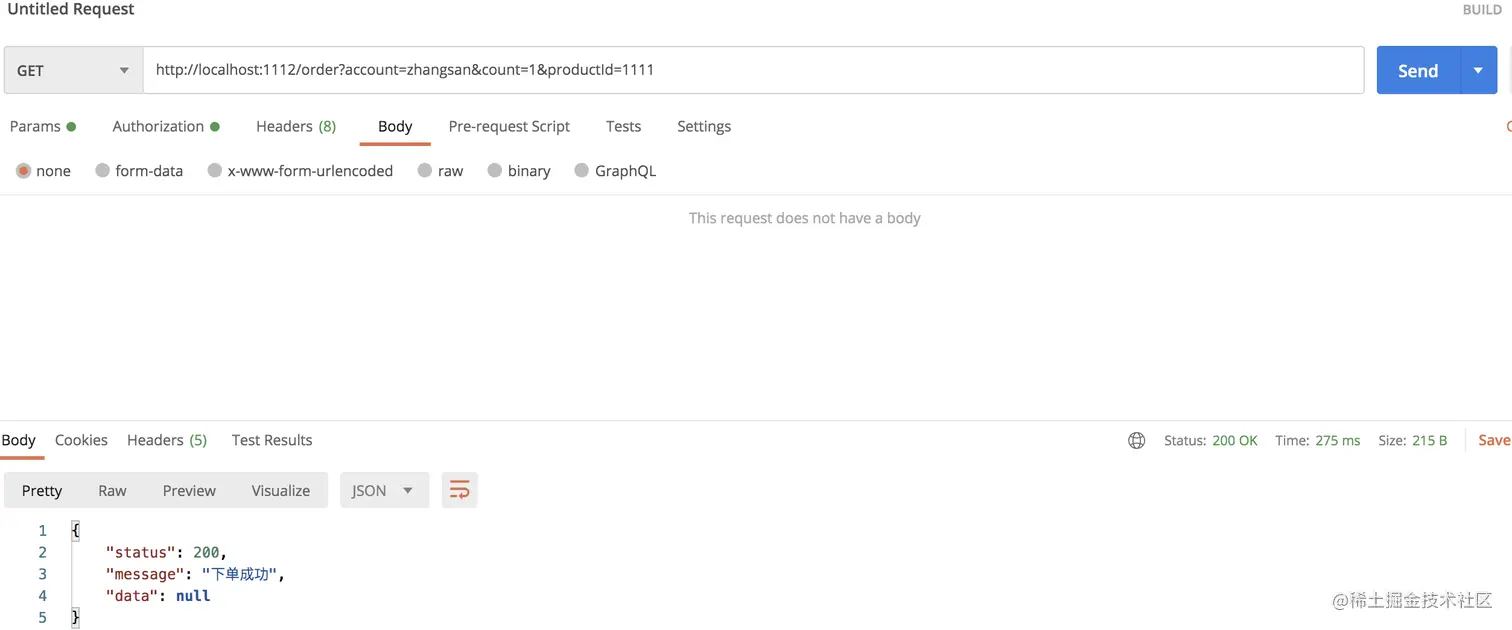 public RespBean createOrder(@RequestParam("acount") String account, @RequestParam("count") Integer count, @RequestParam("productId") String productId) {
