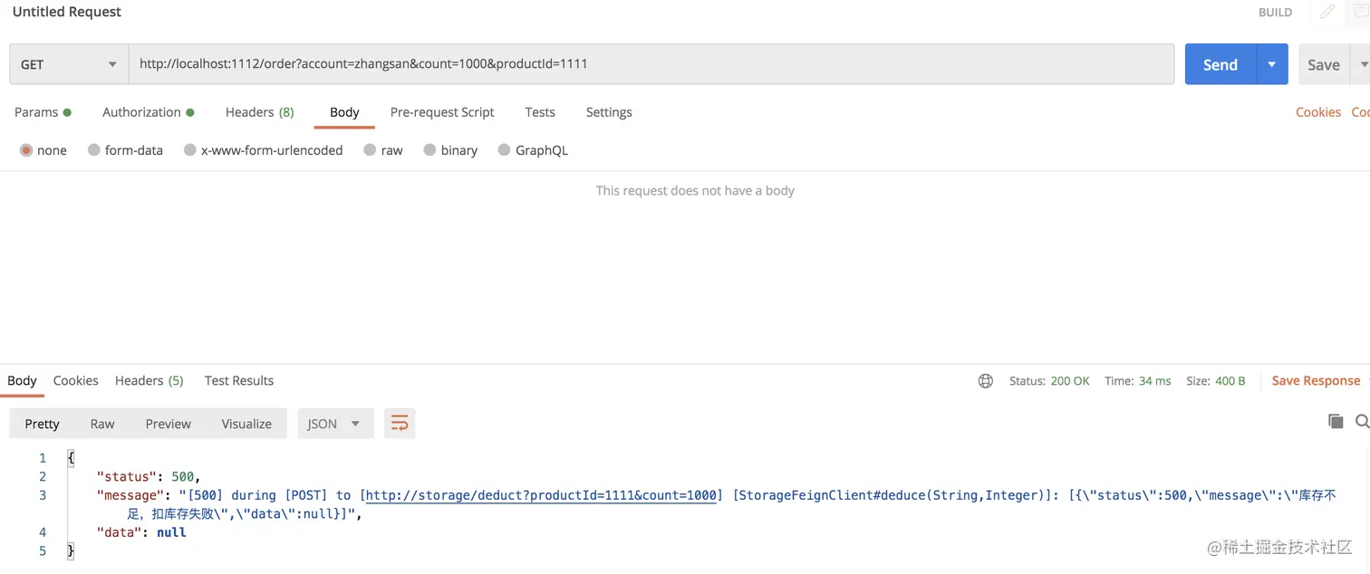 这个案例就是一个典型的分布式事务问题,storage、order 以及 account 中的事务分属于不同的微服务,但是我们希望他们同时成功或者同时失败。