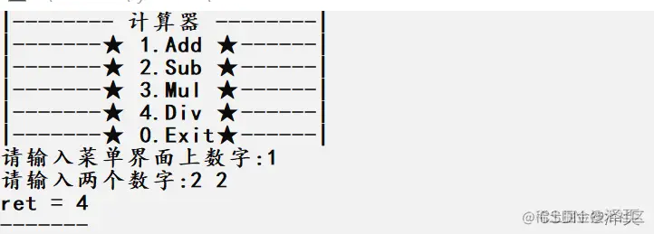 printf("|-------- 计算器 --------|\n");