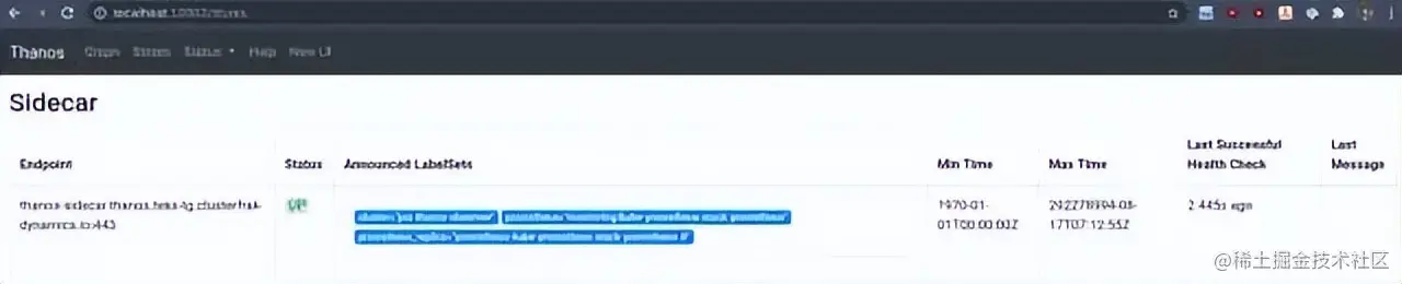 Thanos sidecar与Prometheus运营者和Kube Prometheus栈一起,可以轻松部署。这个组件充当Thanos查询的存储。