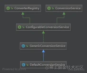 可以看到,Converter接口和ConverterFactory接口的实现类,都是先适配为ConditionalGenericConverter类型,再注册到ConverterRegistry中。也就是说,对于DefaultConversionService来说,只有GenericConverter这一种类型的转换器,因此可以很方便地提供统一接口。