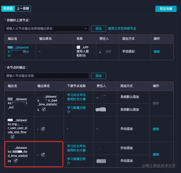 需要注意,sql语句提交会自动识别需要引入dwd表,这时候未设置关联表信息,会提示错误,我们需要在离线任务配置调度信息时,设置输出信息,如下图
