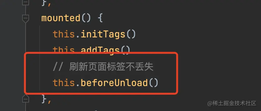 这里会有个问题,刷新页面后,标签丢失了,这里要加个监听方法,