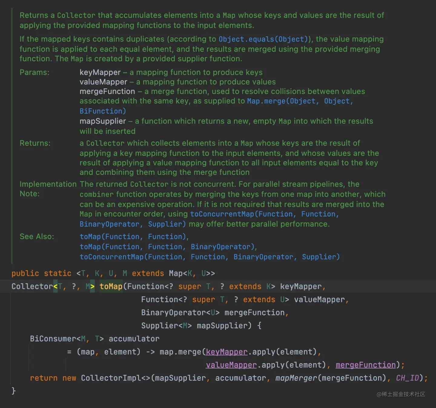 Collectors.toMap支持第四个参数,对map类型进行实例化