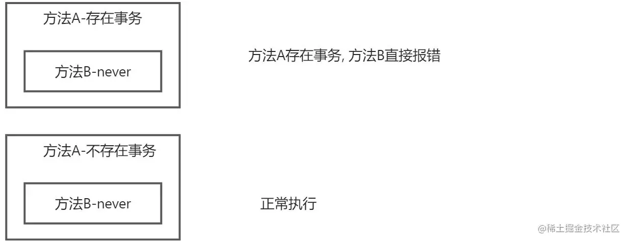 如果当前有事务, 则把当前事务挂起, 自己不使用事务执行,