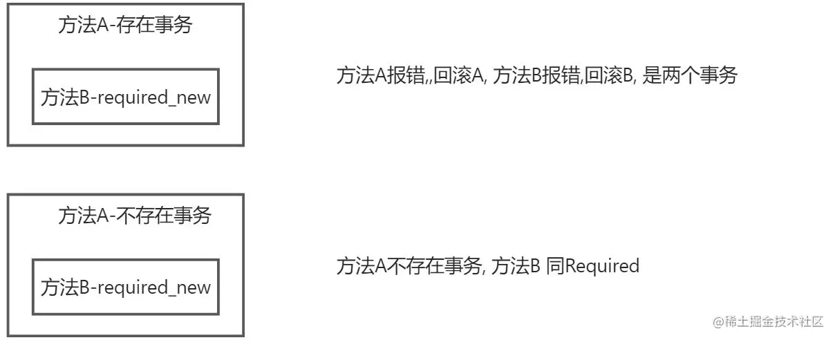如果当期有事务, 则开启一个子事务(嵌套事务), 嵌套事务是独立提交或者独立回滚的, 如果当前没有事务, 则同Required