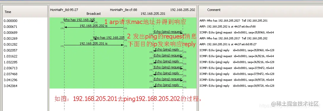 ping的过程,无论是源主机发出request请求还是目的主机回reply的过程,都是首先根据目的ip查找本地路由表,确定下一跳的出口,然后根据下一跳的ip在arp缓存里确定是否有下一跳ip的mac地址,没有就发出arp请求去查找。有的话,二层和ip层组包发出。
