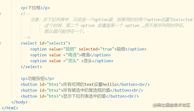 - 注意:在代码中的写的等标签不会在页面中显示,而是会在页面中执行,但是获取的文本内容中含有这个
