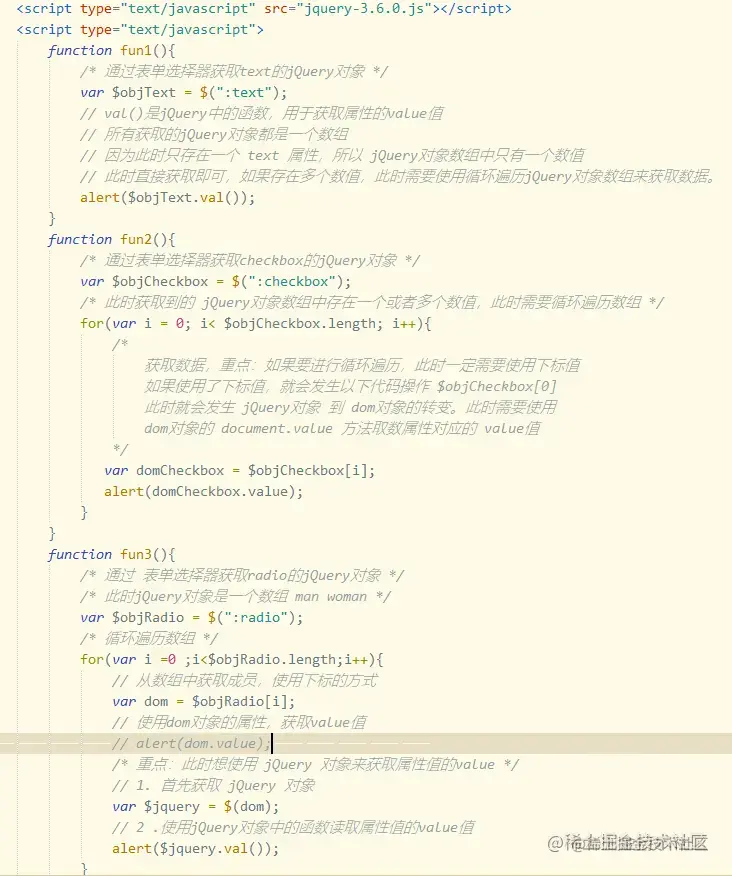 <input type="text" value="张飞" /><br/> <input type="text" value="刘备" /><br/> <input type="text" value="关羽" /><br/> 复制代码语法1 :.each(.each(.each((":text"),function(i,arrobj){alert("下标是:"+ i + "," + "dom的value值是 :" + arrobj.value)});