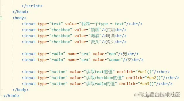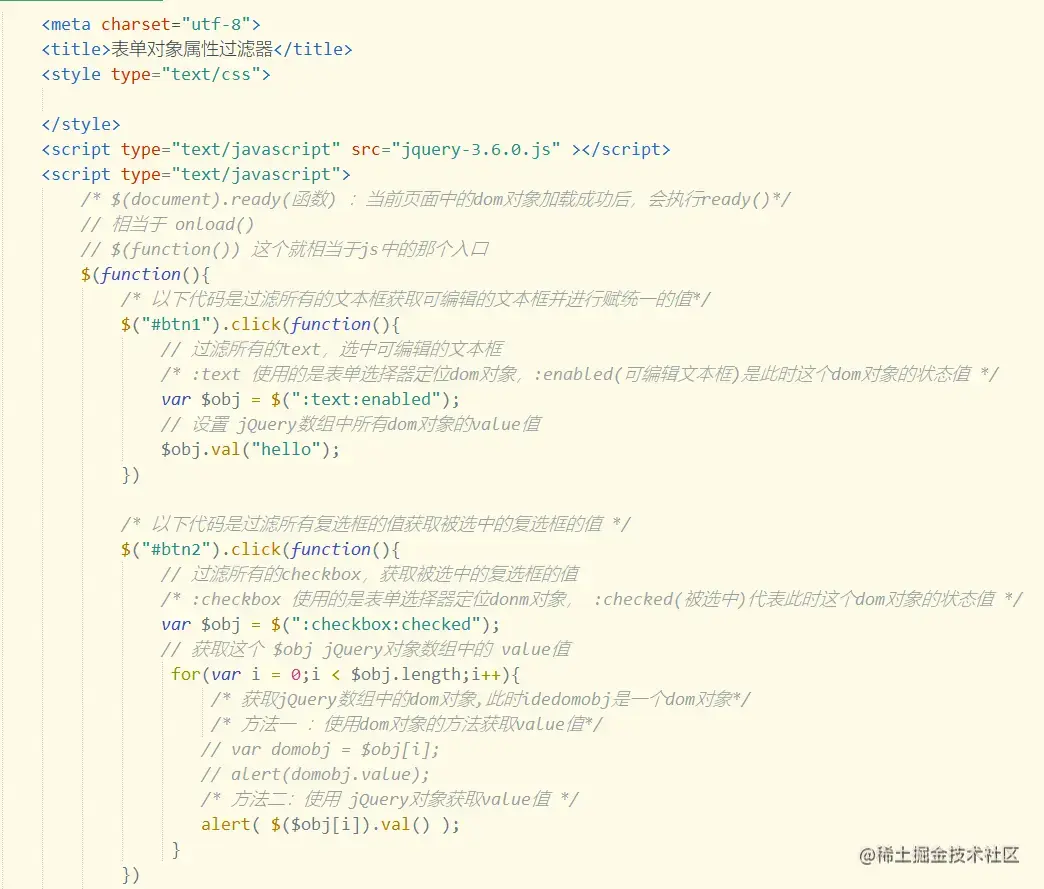注意:无论是否存在表单,表单选择器都会根据相应的type属性值做出选择。