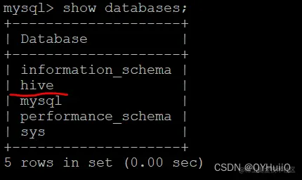 可以看到它已经帮我们创建了名称为hive的数据库: