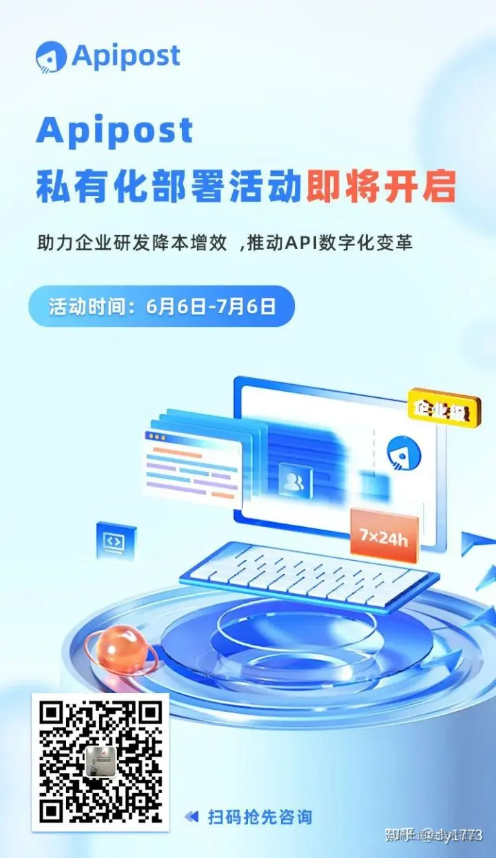 数字化战略是机遇也是挑战,加速数字化转型”为各行各业转危为机指明了方向。为帮助企业更好的推动API数字化管理升级,应对远程办公挑战,2022年6月6日-7月6日,Apipost正式推出**「私有化部署活动月」**,从产品和服务两大维度助力广大企业级研发协同,同时在活动期间,特释放100名限时超低一口价,敬请报名!