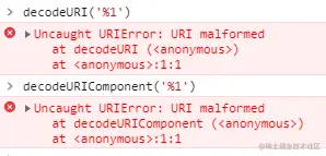 decodeURIComponent('%1'); // Uncaught URIError: URI malformed