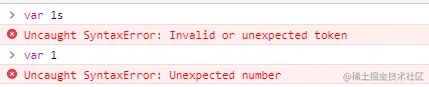 var 1s; // Uncaught SyntaxError: Invalid or unexpected token