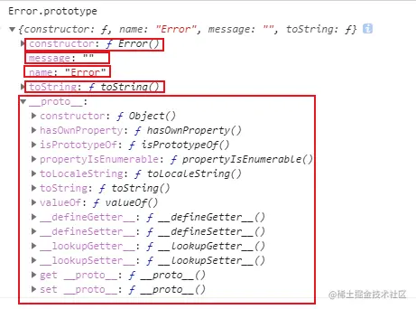 Error是基类型,其他类型的错误类型都是继承该类型,所以所有的错误类型共享了一套相同的属性;