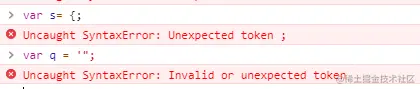 var s = {; // Uncaught SyntaxError: Unexpected token ';'