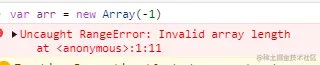 var arr = new Array(-1); // Uncaught RangeError: Invalid array length
