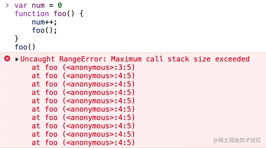 foo(); // Uncaught RangeError: Maximum call stack size exceeded