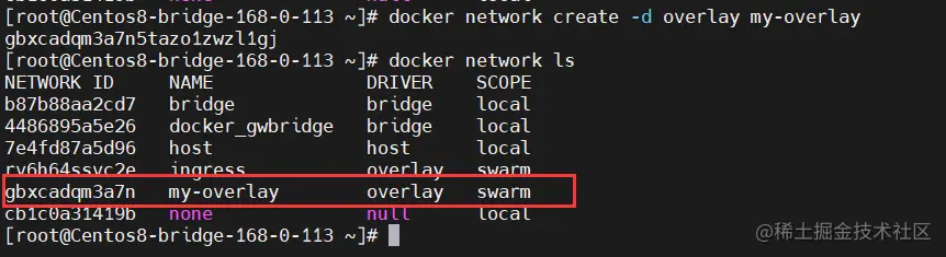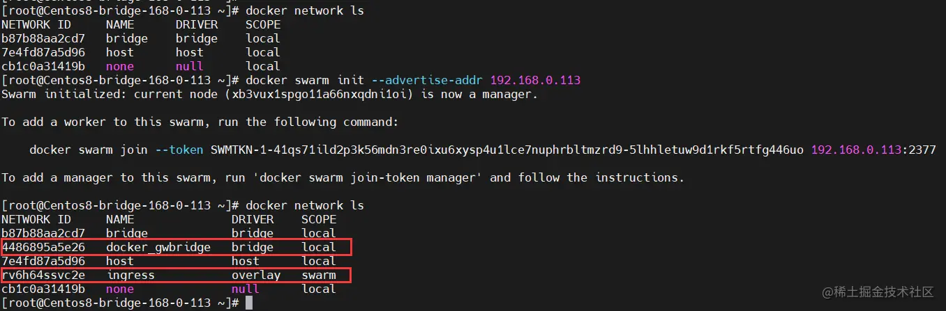 每当初始化一个集群(swarm)或者添加一个docker主机到集群时,则在该主机上会自动创建两个网络(ingress和docker_gwbridge),但是swarm集群需要三个网络,还有一个自定义overlay网络。