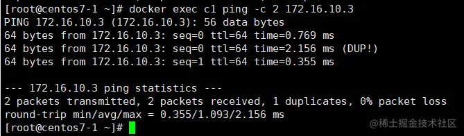 --ip 指定容器 c1 使用的 IP,这样做的目的是防止自动分配,造成 IP 冲突 --network 指定 macvlan 网络