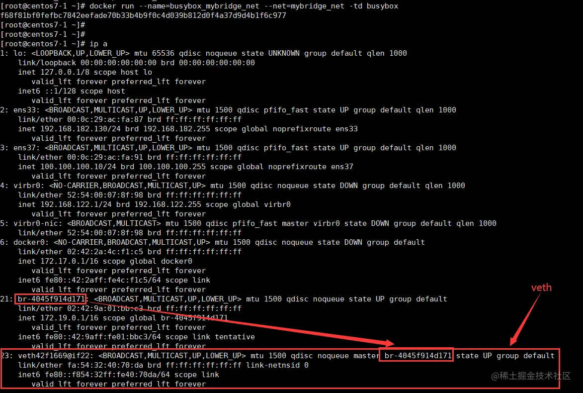 $ docker run --name=busybox_mybridge_net --net=mybridge_net -td busybox