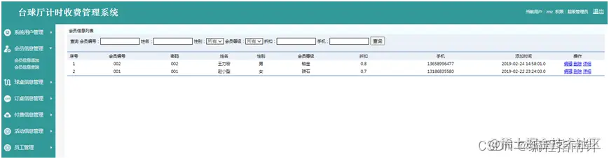 本次设计开发的这套台球厅计时收费系统,主要基于SSM框架开发实现,前端结合JSP和Bootstrap来开发实现,系统主要实现为台球厅运营方提供一个计时收费的核心业务系统,主要包含三类用户:系统管理员,普通管理员,会员