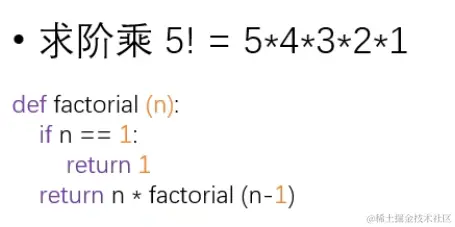 递归函数:如果一个函数的内部不调用其他函数,而是自己本身的话,这个函数就是递归函数。