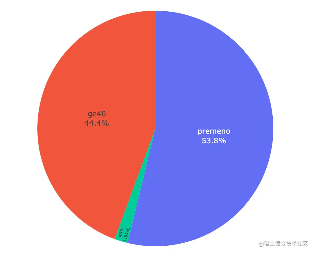 | menopause | 绝经情况 | lt40(40岁之前绝经), ge40(40岁之后绝经), premeno(还未绝经) |