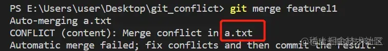 从冲突信息可以看到,a.txt发生冲突,必须手动解决冲突之后再提交