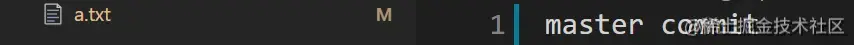 在本地主分值master创建一个a.txt文件,文件起始位置写上master commit,如下: