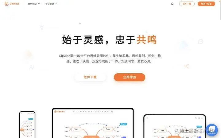 - 打开 Gitmind 官网,并进行登录。此思维导图支持中文。