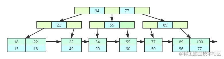 第一项34:34>22不符合要求,丢弃。查询结束。 - 最后得到2条符合筛选条件,将查询结果集返给客户端。