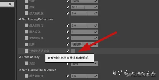 Ray Tracing Reflections中的包括半透明对象(Include Translucent Objects),有没有开启(可能管用)。 -
