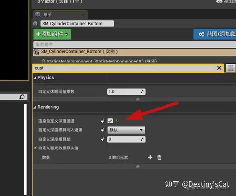 ① 模型开启渲染自定义深度通道(Render Custom Depth Pass)