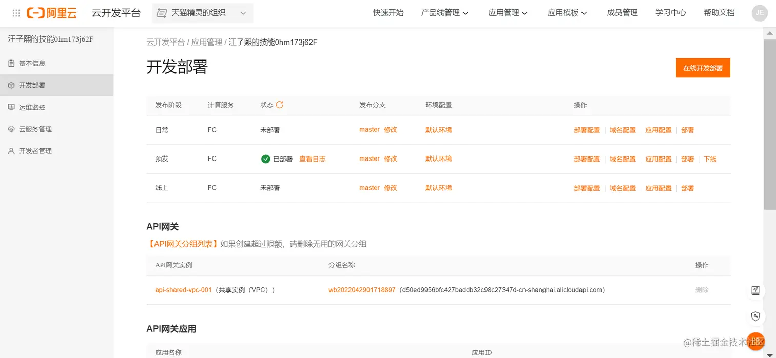 在线开发模式同阿里云云原生开发即 FAAS,这两种方式均无需搭建自己的应用服务器,区别在于前者作为一款免费的云服务资源和在线开发环境,资源额度有限,更适合快速体验天猫精灵技能应用的开发流程,而不适合用于技能的生产模式下部署。